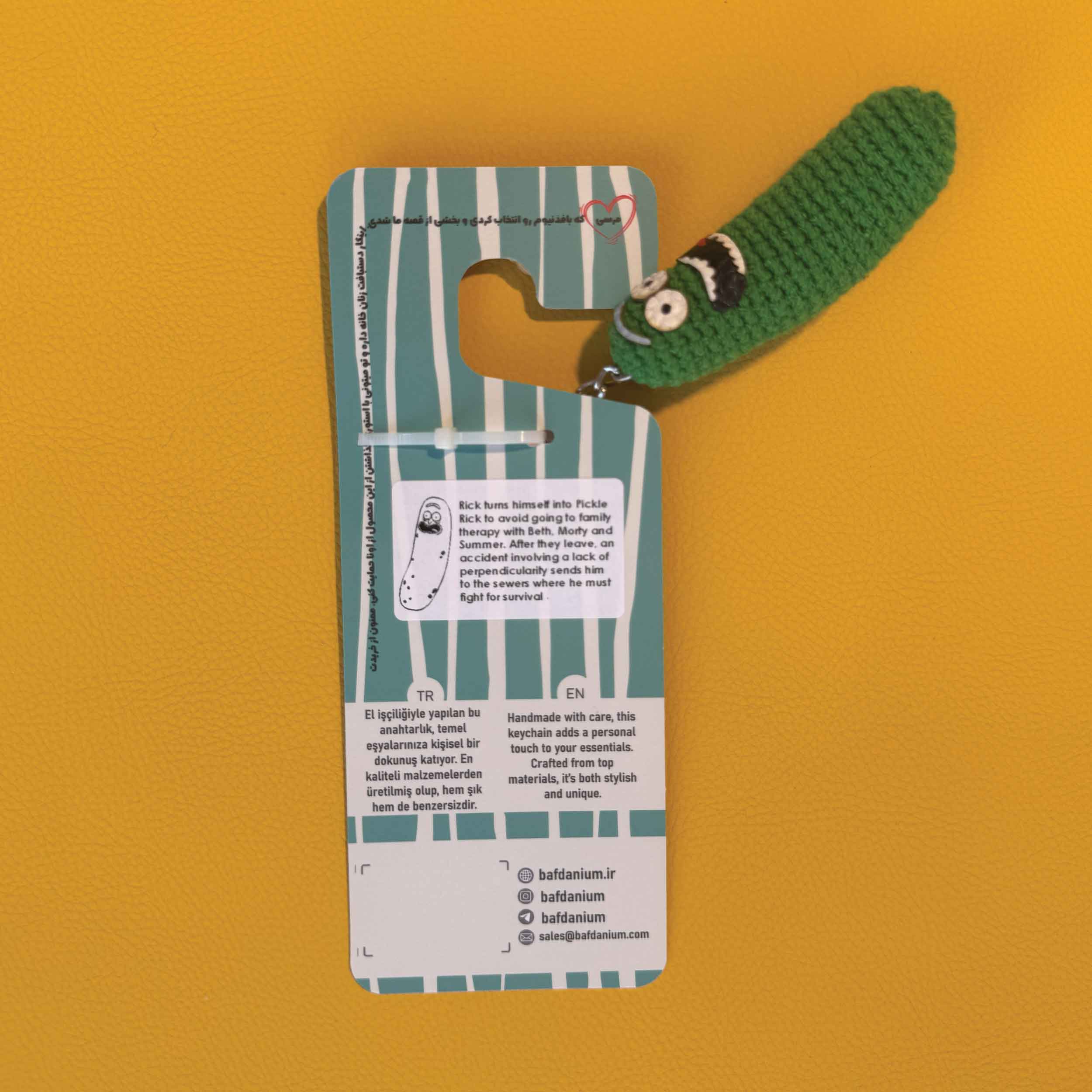 جاکلیدی ها جزو اکسسوری هایی هستند که میشه گفت همراه همیشگی شما میتونن باشند و گم شدن اونها شمارو به دردسر میندازه، حالا این محصول باید طوری باشه که زیبایی بصری و لذت خاصی رو به شما القا کنه و برای همین از کاراکتر های مورد علاقتون میتونین به عنوان همراهی برای کلیدهاتون استفاده کنید و ما برای دوستداران سریال ریک و مورتی، جاکلیدی پیکل ریک رو بافتیم.