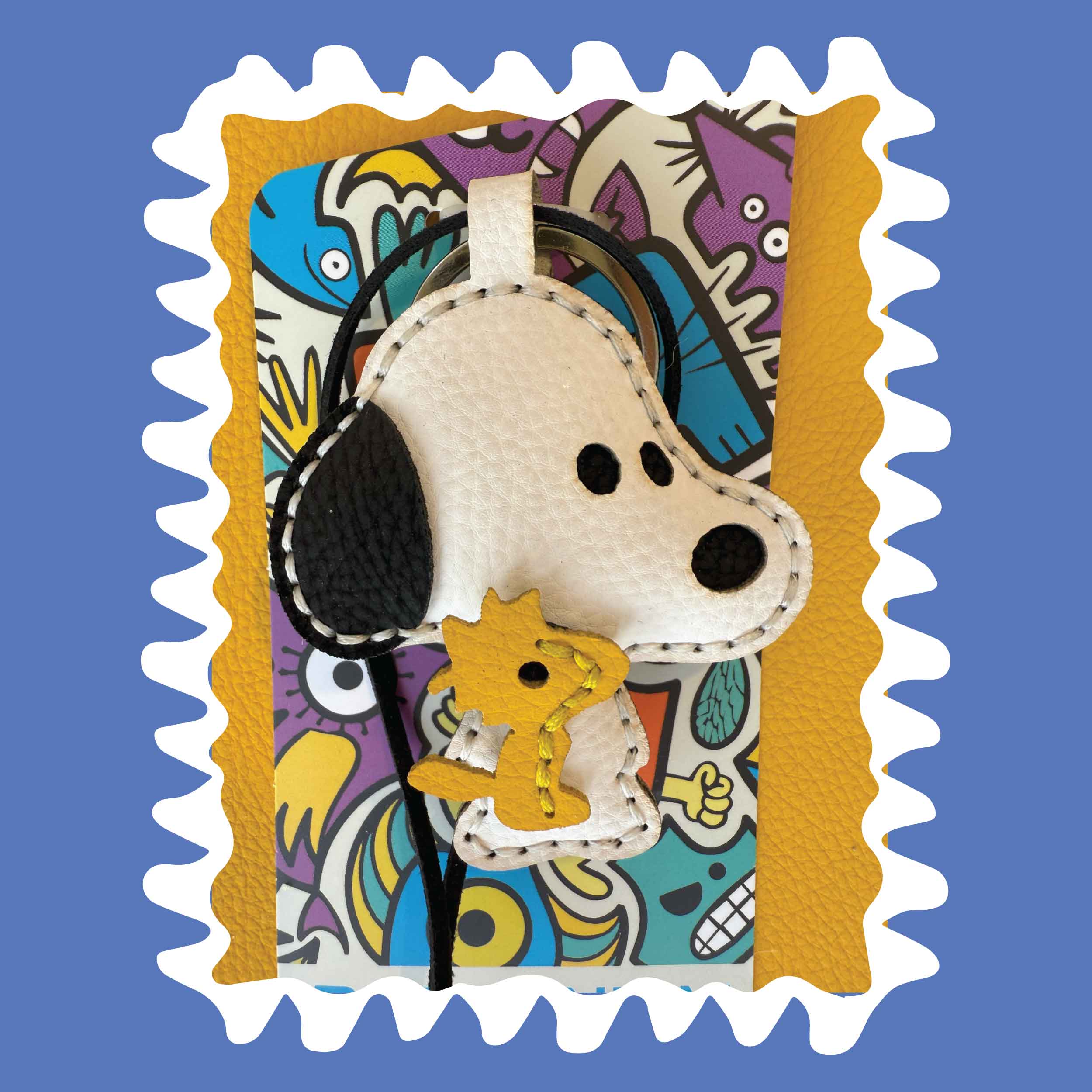 آویز چرمی اسنوپی و دوست کوچولویش (وودستاک)