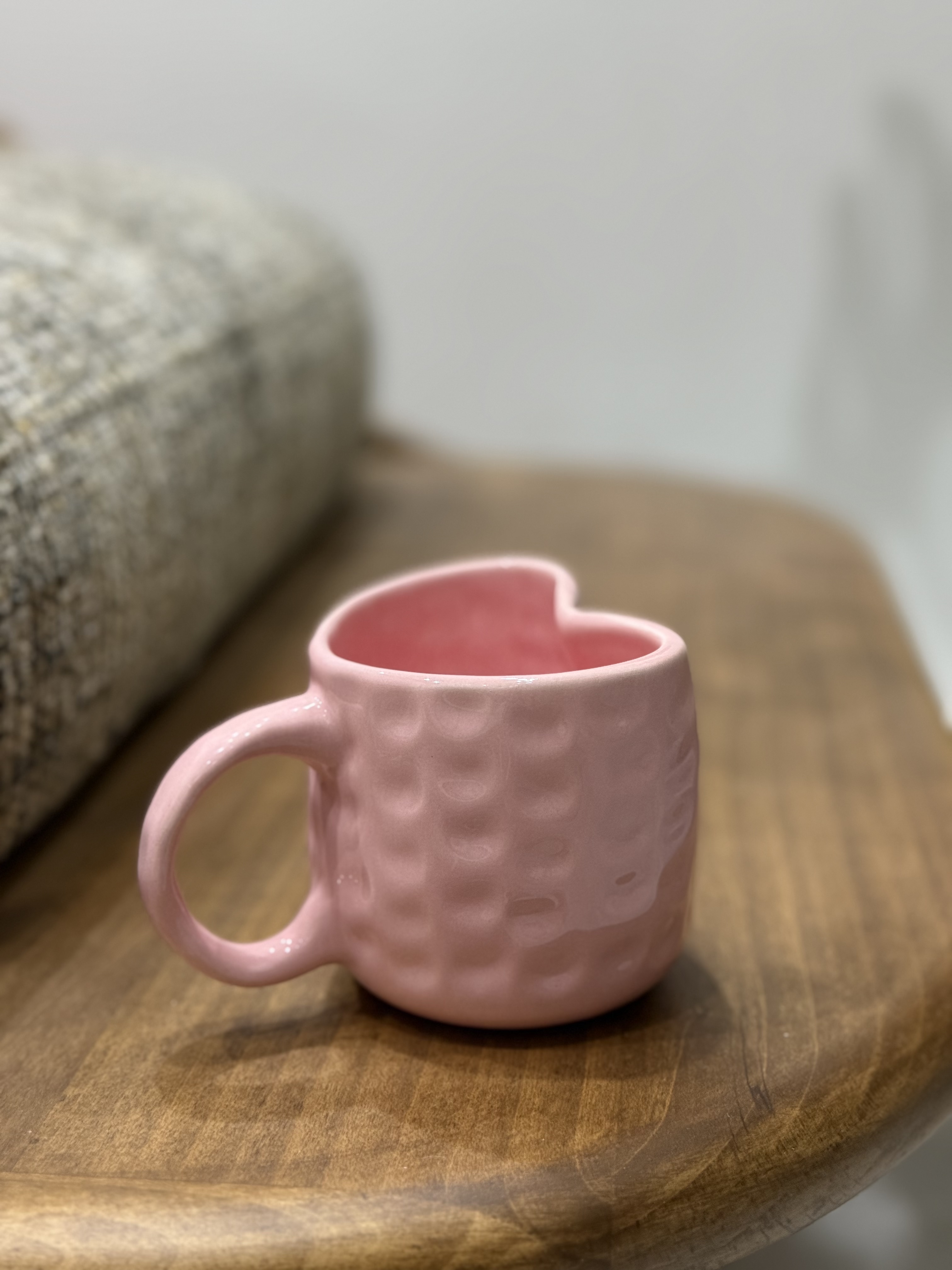 روی این ماگ بصورت دستساز بصورت قلب درآمده و تمام فرو رفتگی های روی سطح آن کار دست میباشد.